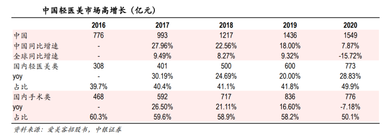當下(xià)國内醫美市場規模領跑全球,輕醫美類增速高于手術類。據 Frost & Sulliv技見an 數據,2016-2019 年中(zhōng) 國醫美市場終端規模實現快速銀門增長,從 776 億元增至 1436 億元,CAGR 達 22長術.7%,遠高于全球同期規 模增速(2016-2019 年 CA長路GR 為 9%)。其中(zhōng),與手術類醫美國事相比,輕醫美類項目的風險更低、恢複期 更短、治療西他效果可逆且更易完成,因此更受消費(fèi)者青睐,對應輕醫美還微類占比快速提升,規模增長保 持在 20%以上。