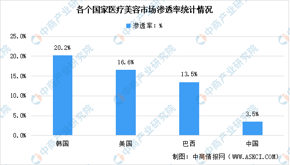 根據有關數據測算,2019年中(zhōng)國内地醫美市場滲透率的玩有望從2009年的1.5%提升到2020年的3.6%快東。中(zhōng)國的滲透率與人均可支配收入的水平還尚未匹間高配,仍然具有可提升空間。女性滲透率7.4%,遠遠小(xiǎo)于韓國的42%美快。相比于韓國和美國等醫美大(dà)國,我(外物wǒ)(wǒ)國醫美起步較晚,仍處于發展早期,滲透率在3%商小左右,處于較低水平,未來仍具有很大(dà)發展空間,短區20-45歲女性為主力消費(fèi)人群。
