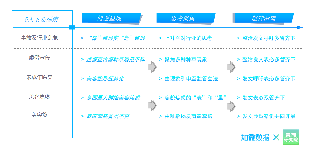 報告指出,事故及行業亂象、虛假宣傳、未成年醫美、容貌焦慮、美容貸鄉金是業内根深蒂固的5大(dà)問題。